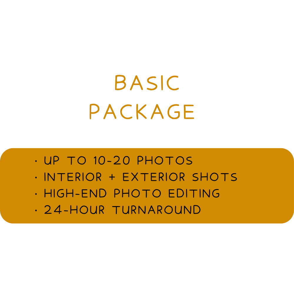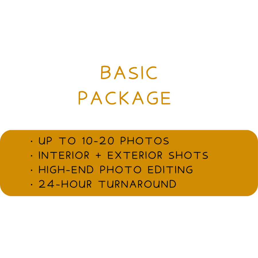 Our Basic Package includes 10-20 pristine professional photos using the latest mirrorless camera technology. We believe in quality in all that we do! Every photo delivered undergoes high-end professional photo editing to ensure you receive the best photos for your listing.However, you do not need to stop there! We can work with you to include any desired add-ons.Find a list of add-ons for this package below: